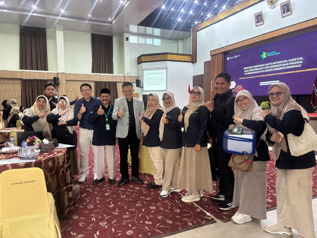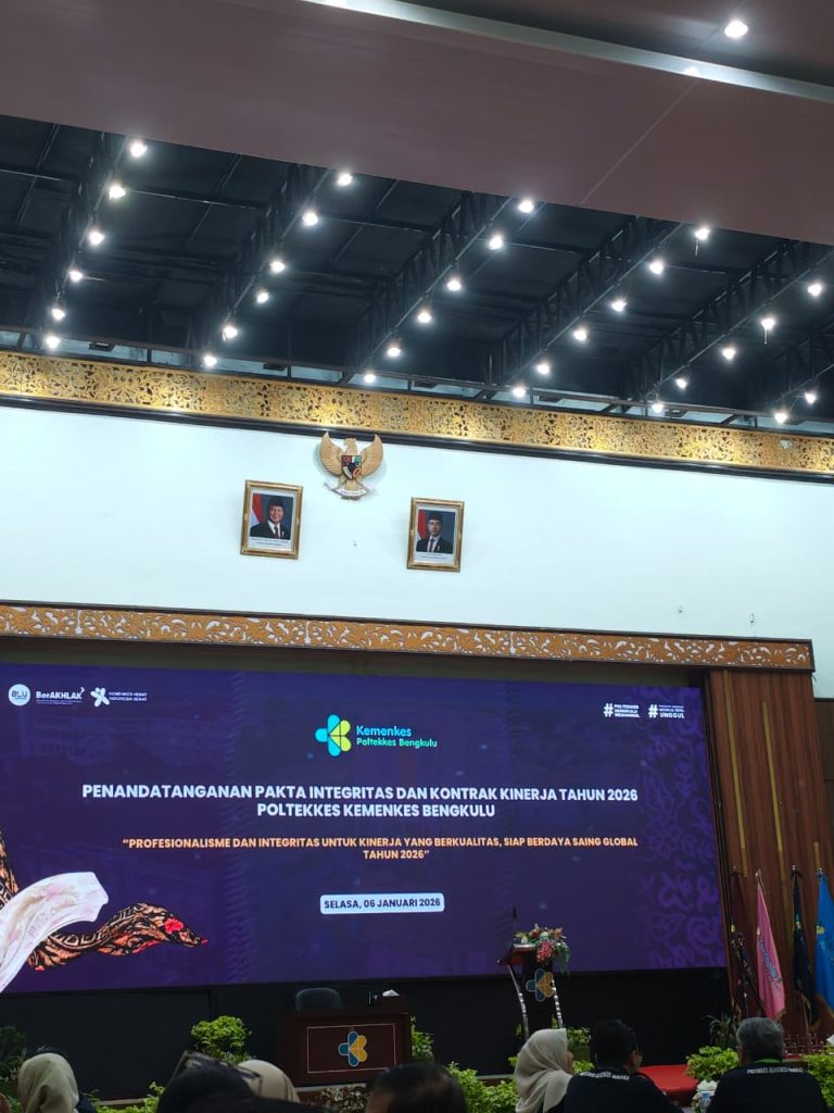 POLKESLU – Poltekkes Kemenkes Bengkulu melaksanakan Penandatanganan Pakta Integritas, Kontrak Kinerja dan Sasaran Kinerja Pegawai Aparatur Sipil Negara pada hari ini (06/1/2026) yang berpusat di Kampus A Gedung Auditorium, kegiatan ini dihadiri ASN (termasuk dosen), 31 orang PPPK dan tenaga kontrak baik yang ada di Kampus A Bengkulu maupun yang ada di Kampus B Curup. Selain penandatanganan kontrak kinerja dalam kegiatan ini dilaksanakan juga sosialisasi Anti Kuropsi oleh Direktur.